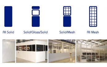 The panels are bolted to the floor which means it has the added benefit of being de-mountable and re-locatable with a minimum of effort. Europa’s standard range comes in a wide variety of width options; however standard configurations do not always fit into required spaces, therefore the non-standard or bespoke design is always an option. Europa is also available in various vertical configurations - all solid, solid/glass/solid, solid/mesh, and all mesh.