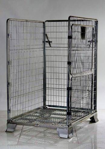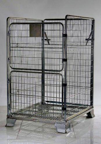 A heavy duty parcel cage. It is a well made four sided demountable cage pallet.